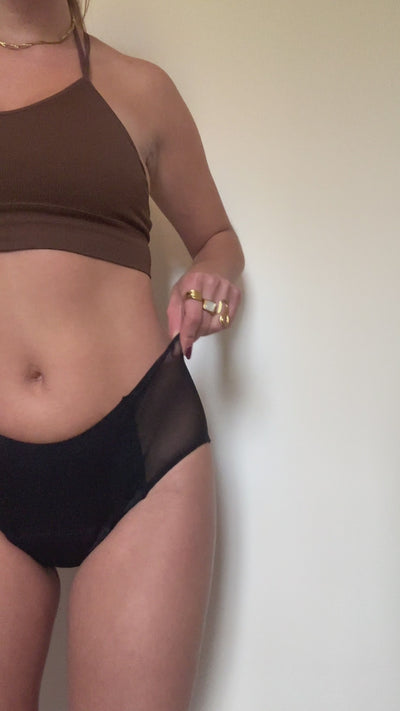 Ons ondergoed kan tot wel 12 uur worden gedragen, maar dit kan variëren afhankelijk van de hevigheid van je menstruatie. Voor hevige flows adviseren wij ons ondergoed met 3 druppels.