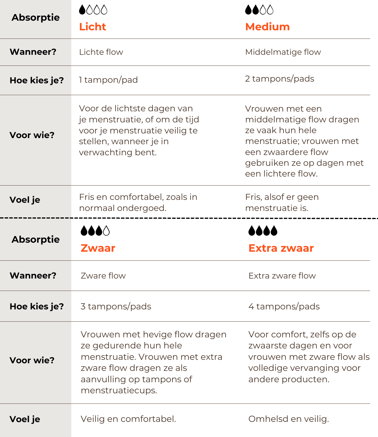 Sommige dagen voel je je on top of the world, andere dagen... niet zo veel. Maar met onze vier absorptieniveaus ben je altijd klaar voor wat je cyclus je ook brengt. Geen zorgen, we begeleiden je naar jouw perfecte match in deze gids!